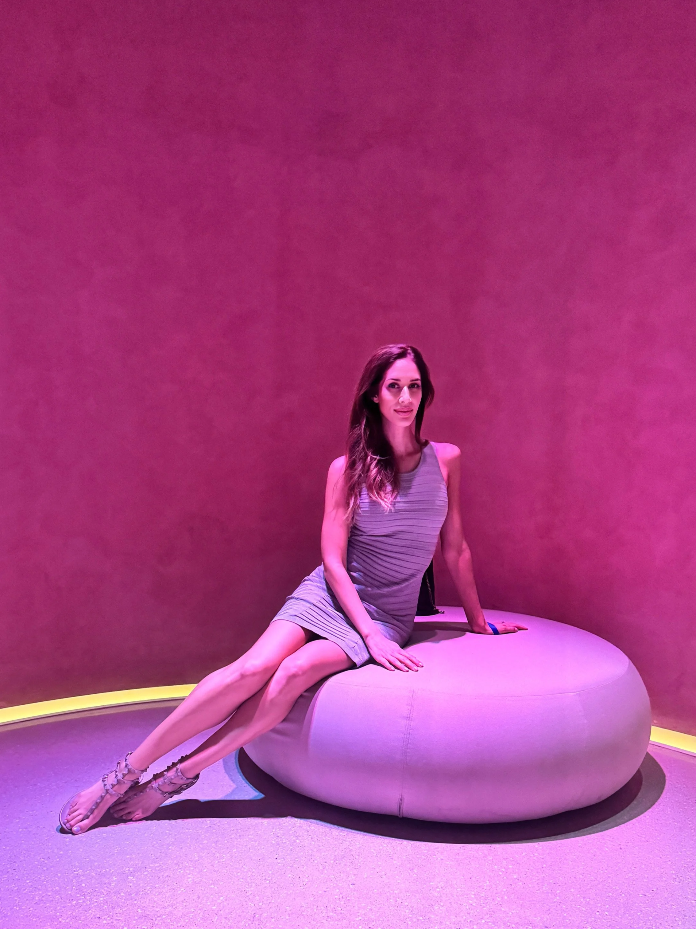 Her paintings often hold tension between apparent opposites: light and darkness, order and imperfection, the personal and the infinite. Underlying the work is a curiosity about scale and multiplicity—how meaning can feel both expansive and fleeting, depending on where one stands.