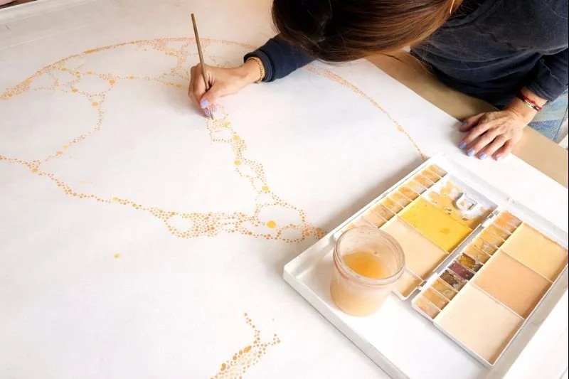 Her practice draws on a contemporary approach to pointillism, rooted in observation, intuition, and sustained attention. Many works are created in extended states of focus, allowing memory, place, and sensation to guide the process. The natural world remains a constant reference, shaping both palette and structure.